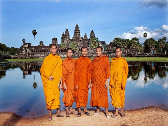 下午前往参观名列世界七大奇景-【小吴哥Angkor Wat】(停留约2小时),小吴哥窟总建筑群占地24公里长,宽8公里,是高棉吴哥王朝全盛时期所遗留下来的不朽宗教建筑;全城雕刻之精美有「雕刻出来的王城」美誉。此为高棉有史以来最宏伟的都城,也是200多座古迹中唯一正门向西的神庙。吴哥窟,不只是座荣耀神祇的庙宇,也是人间对天堂的极致想象与体现。傍晚时分前往【巴肯山Phnom Bahkeng】(停留时间约1小时),它是小吴哥附近的一座山丘,海拔不足70米,但却是整个吴哥景区的制高点。山顶建有巴肯神殿,体现了当时高棉人对山的崇拜。如果天气允许,还可欣赏到壮观的吴哥落日,金色的阳光笼罩着被热带雨林围绕的千年古寺,此时此刻您一定会有穿越时空的奇妙感觉。(温馨提示:根据联合国最新规定,从2011年10月17日起,巴肯山限制上山人数300人每天,如我司团队当天不能安排登巴肯山观日落,则改为小吴哥观日落,请留意)
